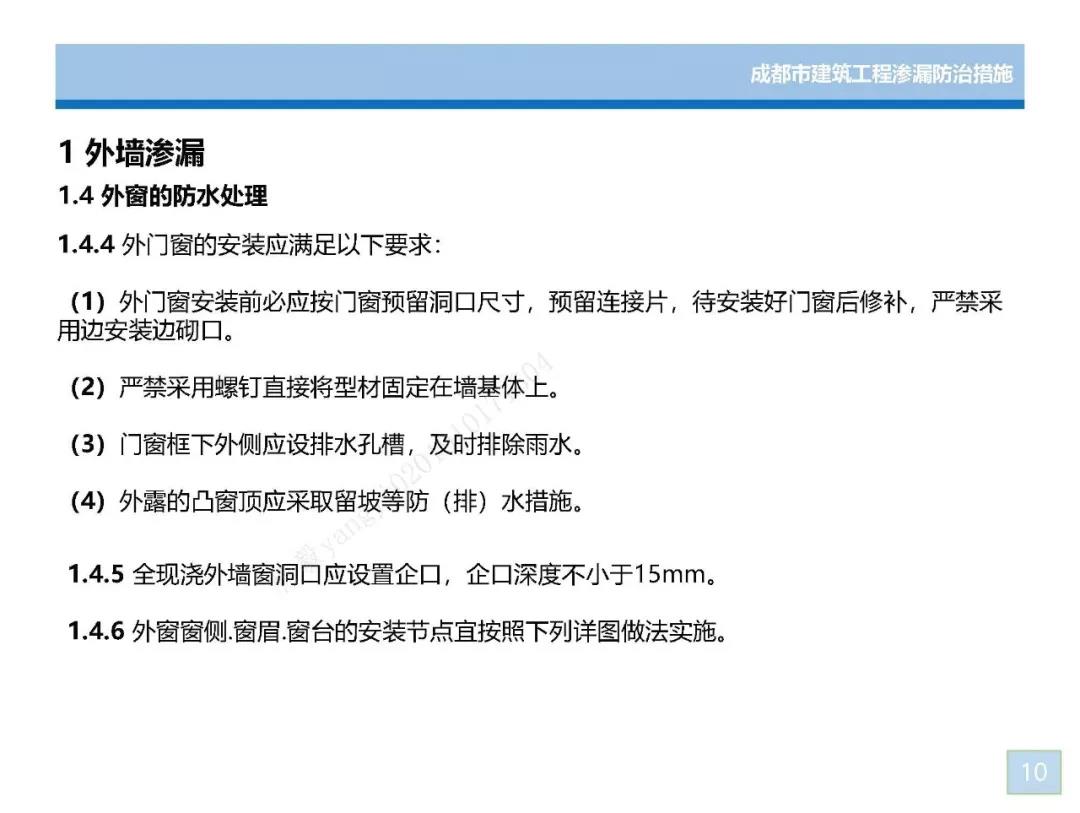 《成都市建筑工程滲漏防治措施》