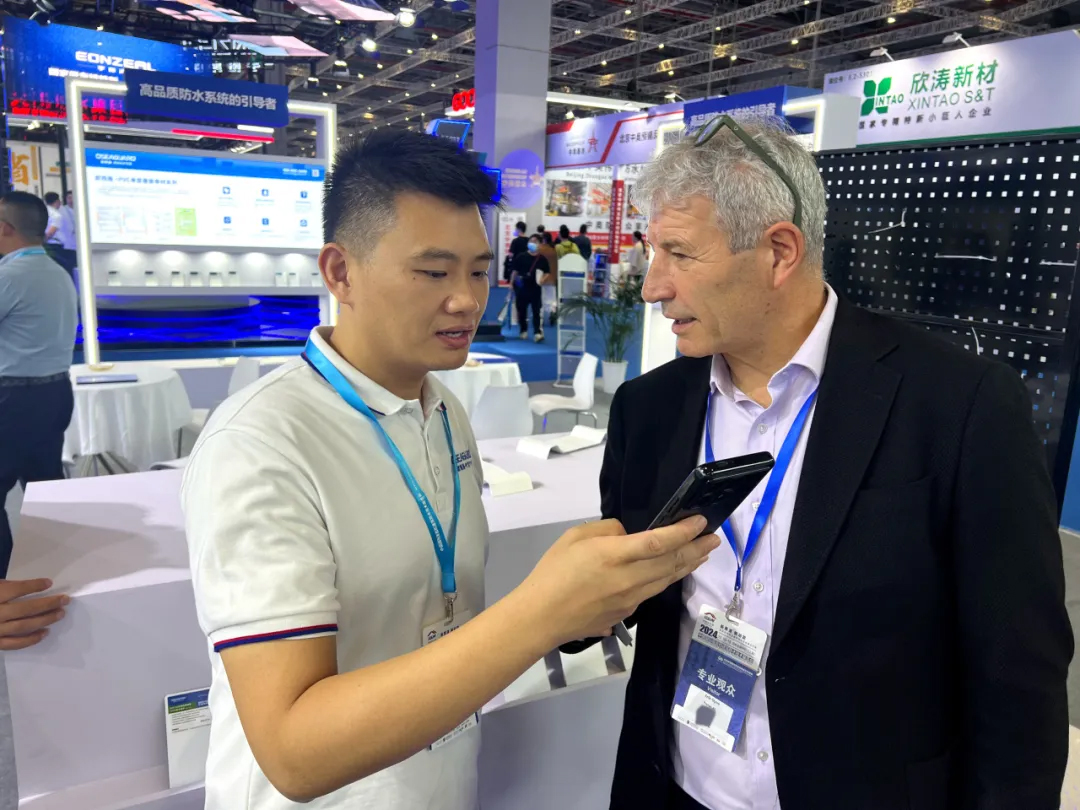 并且在現場對歐西盾防水董事長王洪波先生進行了采訪。通過沈教授和大隱于水先生的專業視角和影響力,讓更多人深入了解了歐西盾防水。無論是其先進的防水產品,還是專業的企業理念,都得到了充分展示。