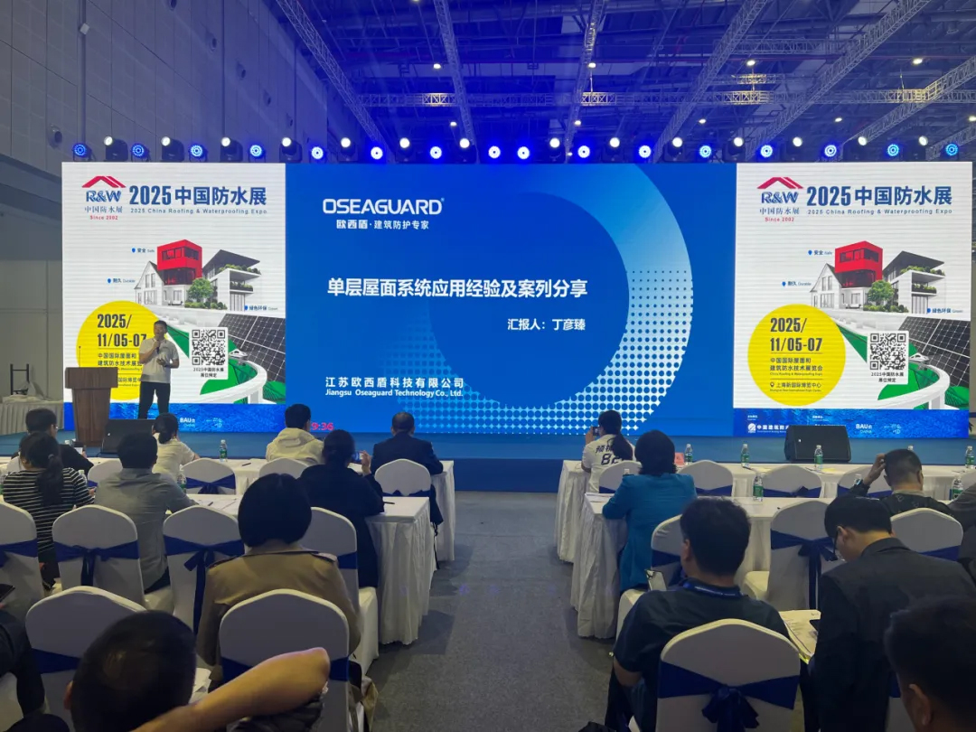 在展會舉行期間,創新防水系統技術研討會同步開展。歐西盾防水市場總監丁彥臻在會上分享了《單層屋面系統應用經驗及案例分享》,并與行業專家展開深度技術交流,一同探尋防水行業未來發展方向。