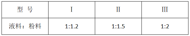 2、將粉料慢慢加入液料中,同時開動電動攪拌器充分攪拌至均勻,攪拌時間約5min,即可使用。配比為液料:粉料=1:1.2(I型)或1:1.5(II型)或1:2(Ⅲ型);
